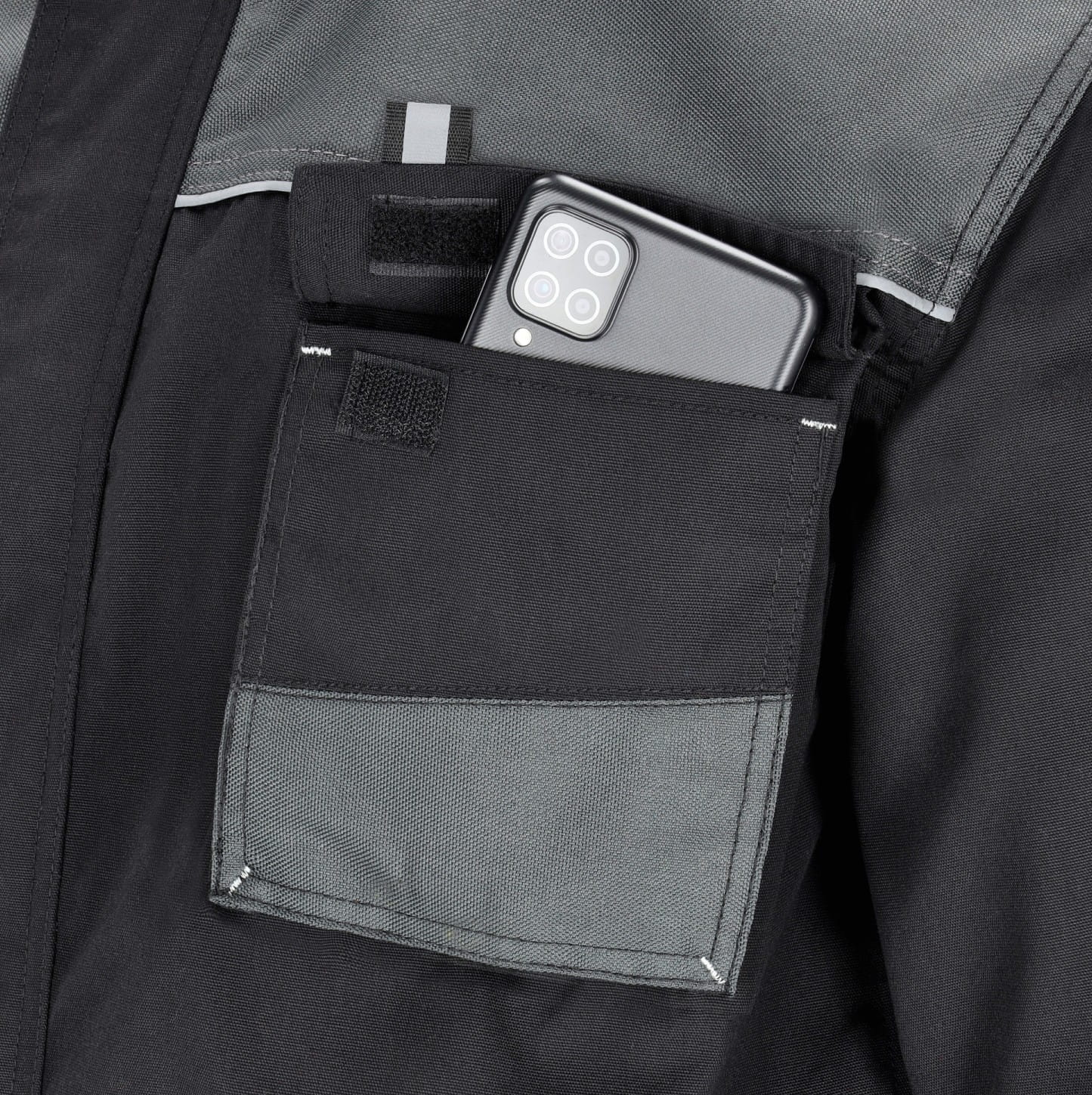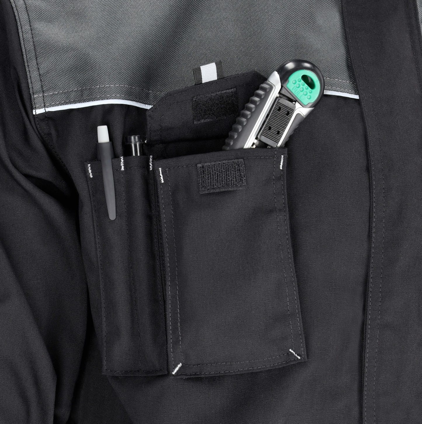 6 wielofunkcyjnych kieszeni – miejsce na telefon, długopisy i narzędzia, kieszenie miechowe zapinane na rzep