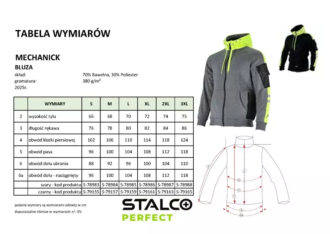- Nowoczesny design: Klasyczny krój w połączeniu z dyskretnym logo STALCO sprawia, że bluza prezentuje się profesjonalnie i stylowo.