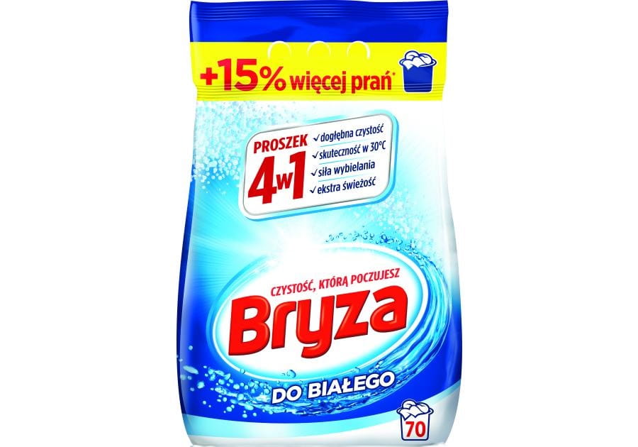 - Proszek do prania tkanin białych marki Bryza to uniwersalny środek, dzięki któremu wykonasz nawet 70 prań.