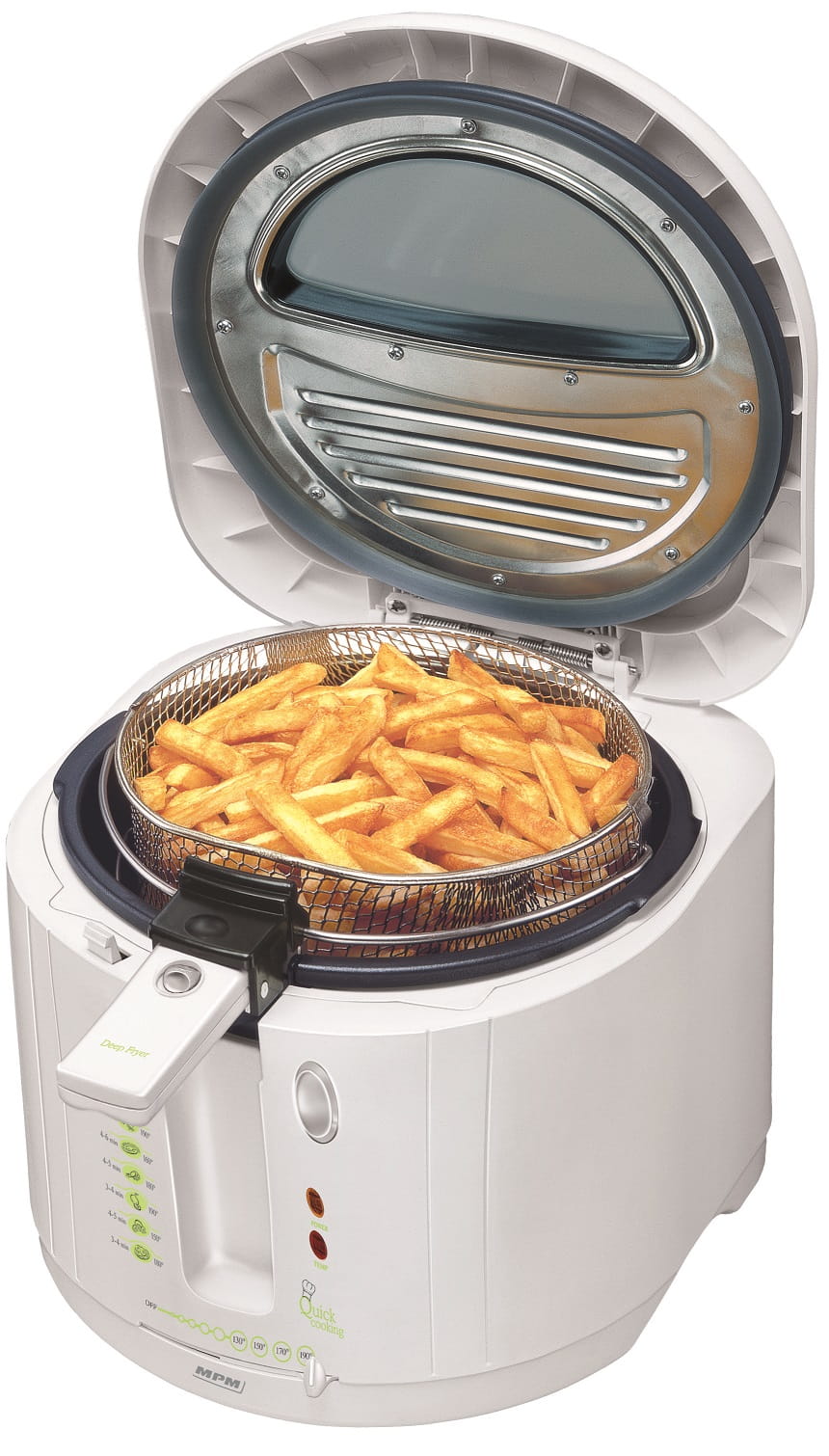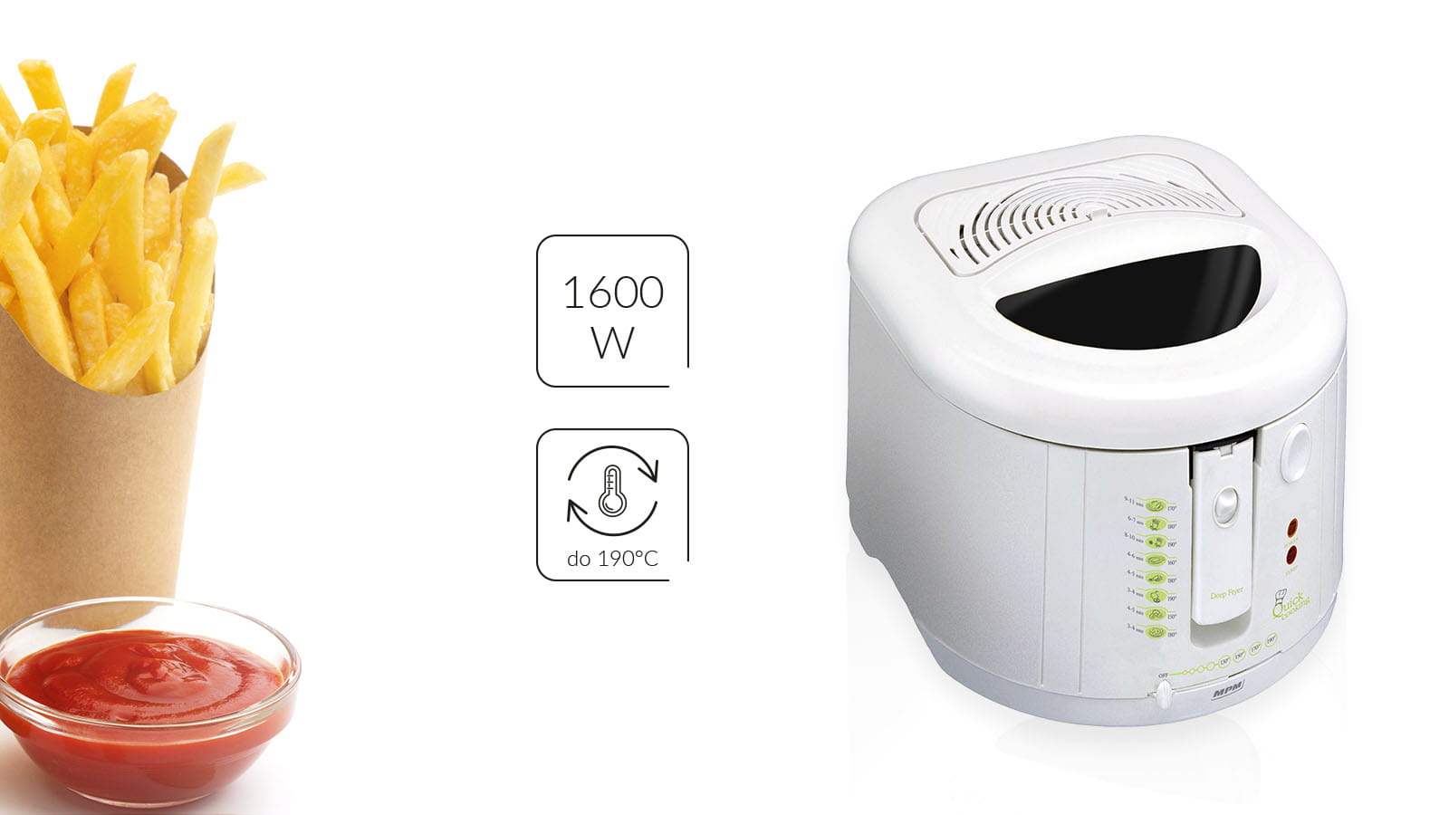 - koszyk na frytki z wygodnym uchwytem i zatrzaskiem umożliwiającym odsączenie oleju