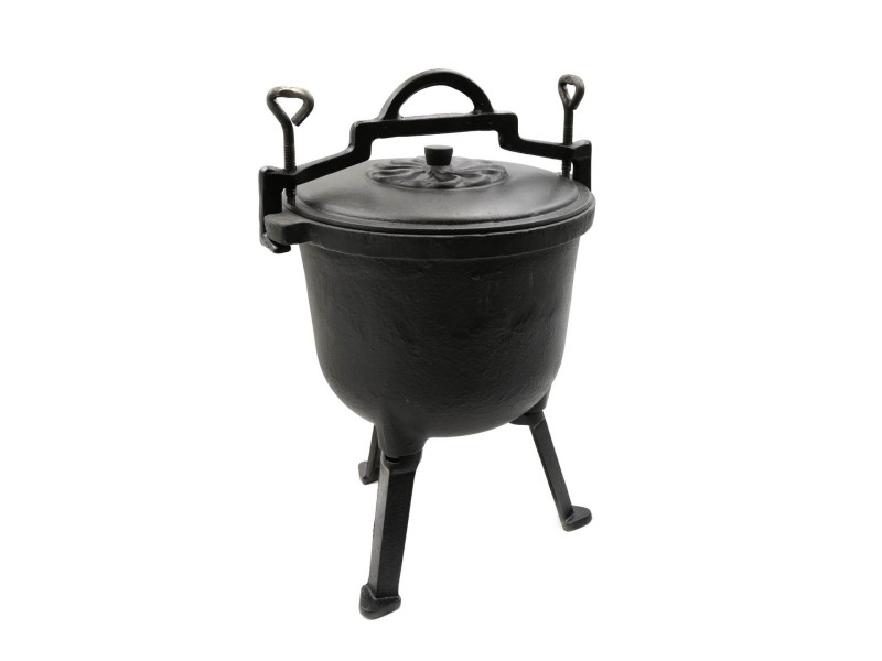 - Emaliowany, żeliwny kociołek myśliwski o pojemności 8 litrów.
