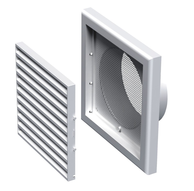 KRATKA WENTYLACYJNA 154X154 MM Z SIATKĄ I KOŁNIERZEM OKRĄGLYM FI 100 MM, BIAŁA