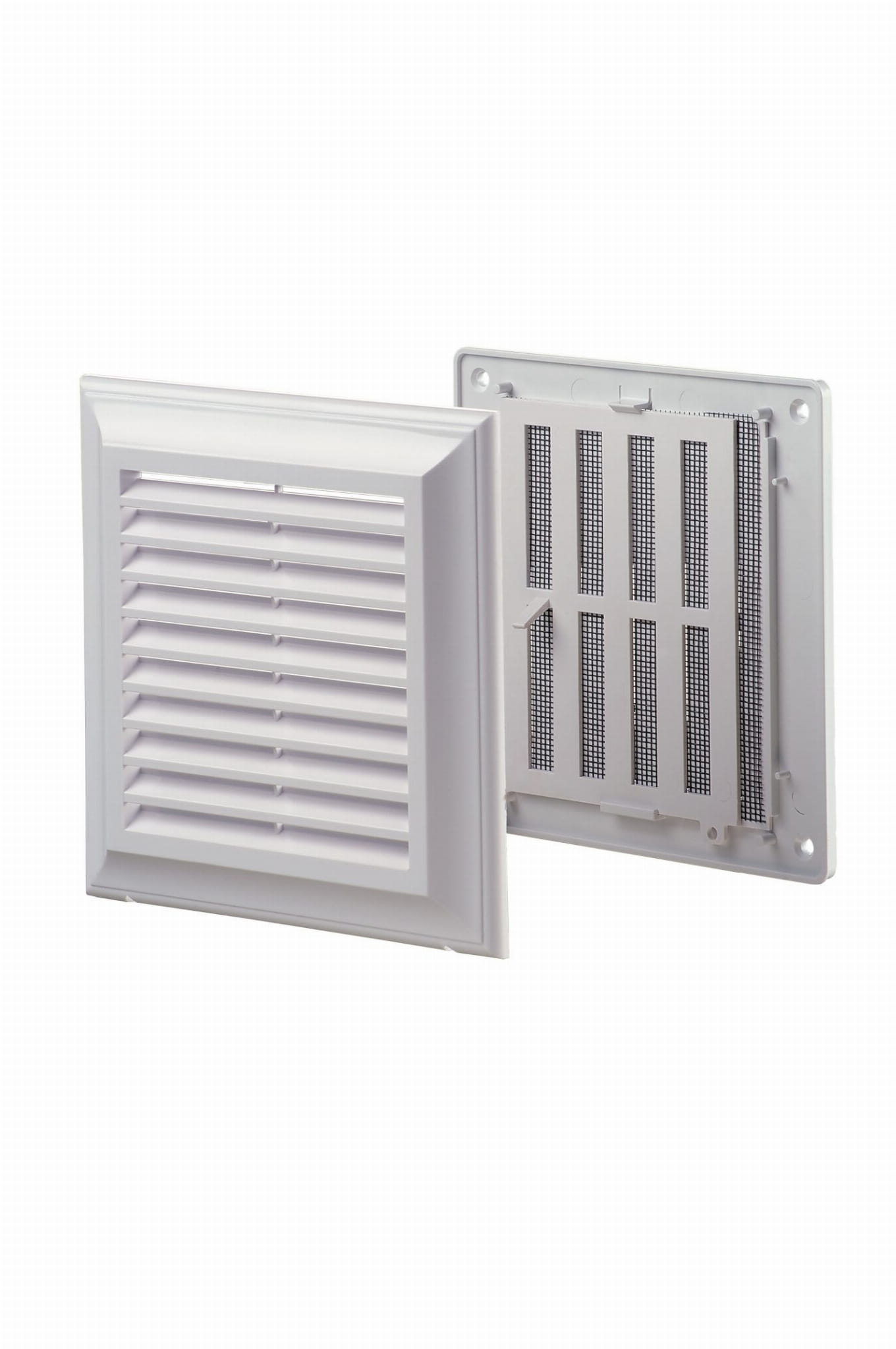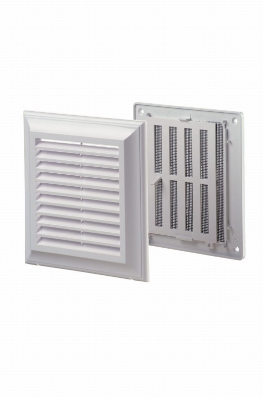 - Kratka wentylacyjna z siatką oraz regulowaną żaluzją, bez kołnierza.