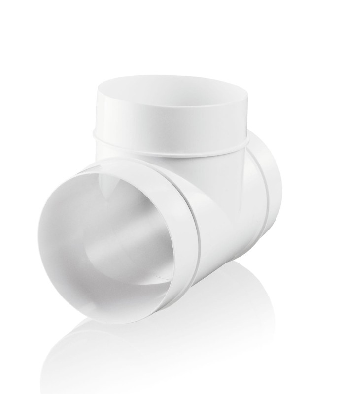 - Okrągły trójnik do poprzecznego rozgałęzienia kanałów okrągłych. Łatwy montaż bez specjalnych narzędzi, „na wcisk”, nie wymaga spoiwa typu klej, lekka konstrukcja, estetyczny wygląd, zalecana temperatura pracy -20 do 50 stopni C.