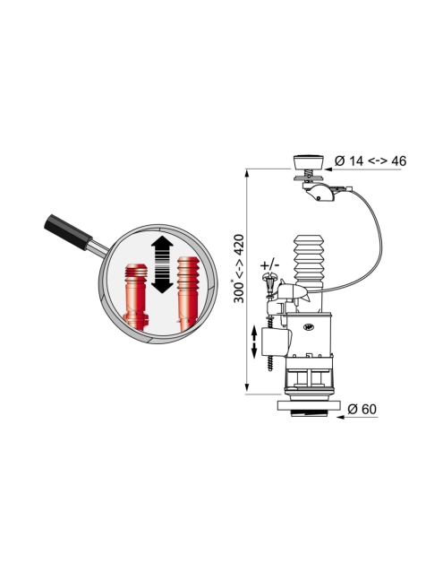 - Czerwony zawór spustowy WC ma następujące parametry techniczne: