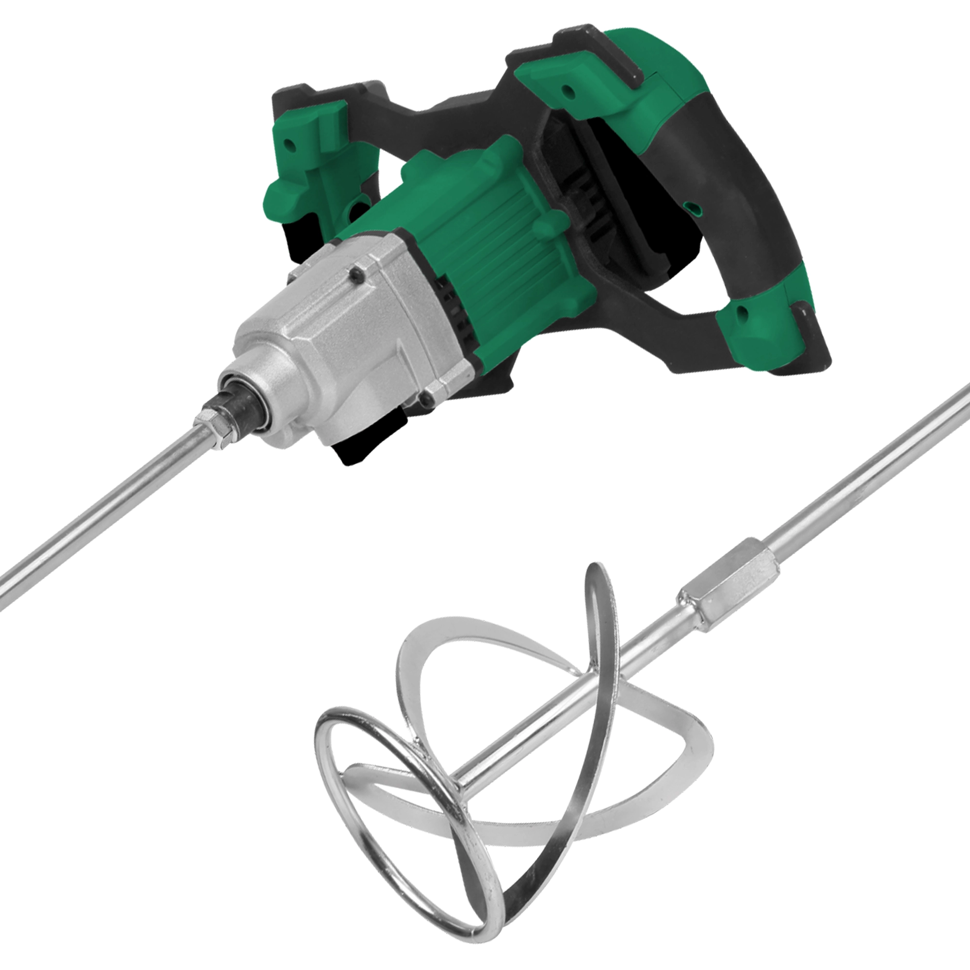 ✅ Gwint M14 – mocny uchwyt narzędziowy pozwala na stabilne zamocowanie mieszadeł o średnicy do 120 mm, co sprawia, że mieszarka radzi sobie nawet z większymi objętościami zaprawy.